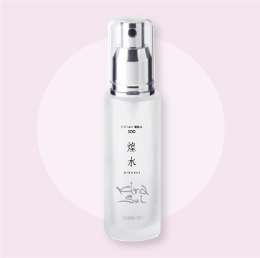 テラヘルツ機能水SOD『煌水』は、大地に眠る生物由来のミネラルからつくられた「起電 微粒子」が、テラヘルツ波を放つ機能水です。抗酸化力、抗菌力、肌への親和性などに優れ 、水分子の運動を活性化させることによって、今までと全く違った形で肌にアプローチ! 「煌水」(キラスイ)は、エイジングケアや紫外線対策など、あらゆるスキンケアをサポー トします。また、「煌水」(キラスイ)は、防腐剤など化学物質を全く加えていないため、 敏感肌の方、小さなお子様をお持ちの方にも安心してお使いいただけます。